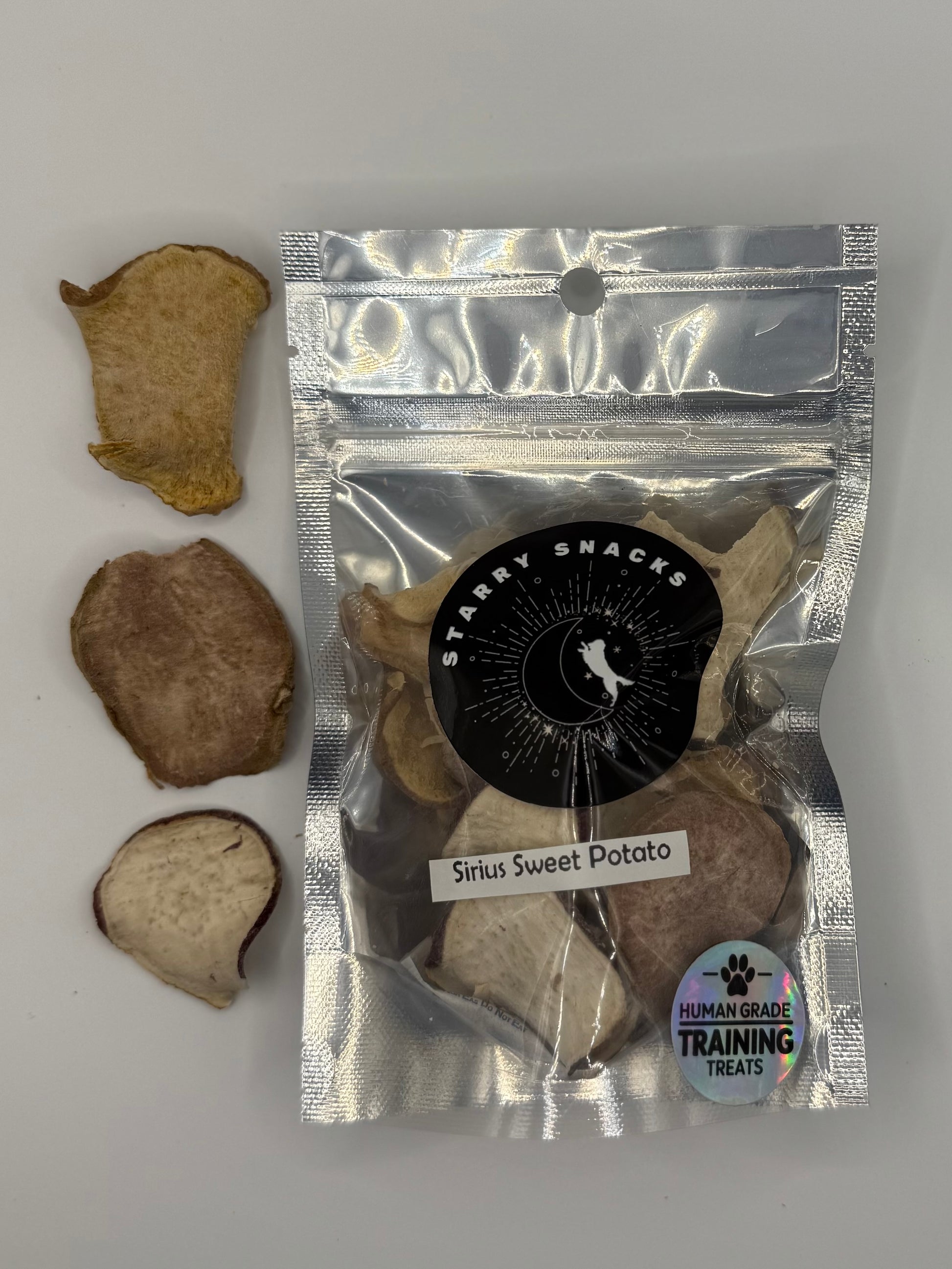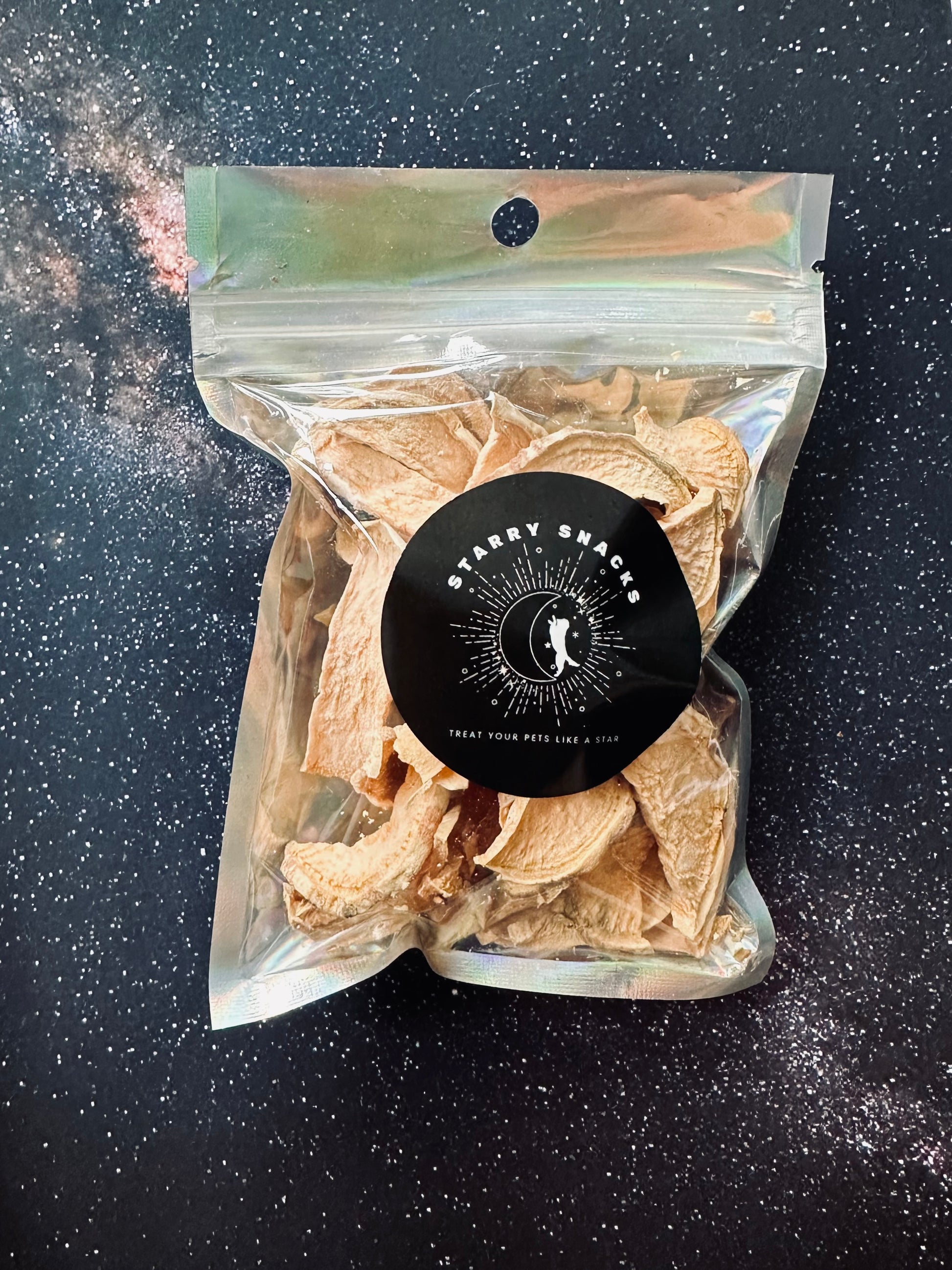 This Sirius Sweet Potato treat is made with just what your pet needs for an out-of-this-world snack: high-quality, locally sourced sweet potato. I hand-trim, and prepare each small batch myself to ensure your four-legged star gets nothing but pure, wholesome air-dried goodness. No fillers, no preservatives, no nonsense—just real ingredients, gently air-dried and packed with galactic flavor.