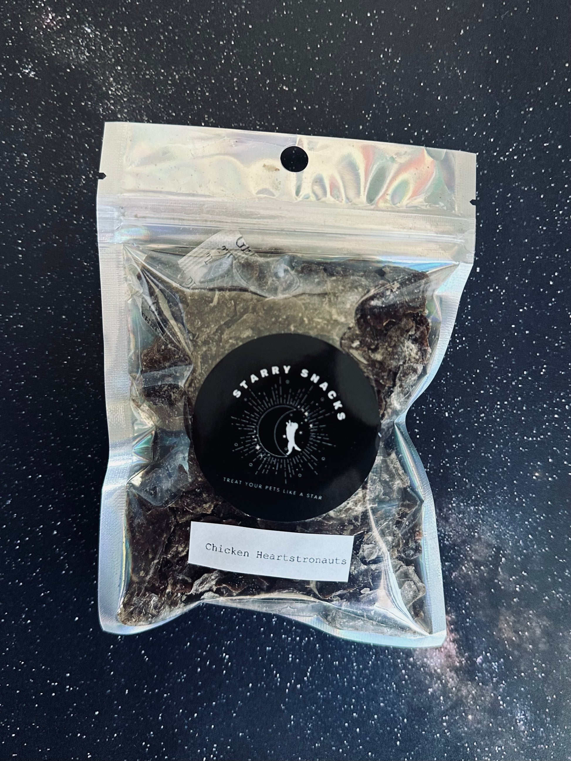 These single-ingredient Chicken Heart treats are made with just one thing: high-quality, locally sourced chicken hearts, I hand-trim, grind, and prepare each small batch myself to ensure your pet gets nothing but pure, wholesome air-dried goodness. No fillers, no preservatives, no nonsense—just real Chicken Hearts, gently air-dried and packed with flavor. Your pet deserves to be treated like a star!